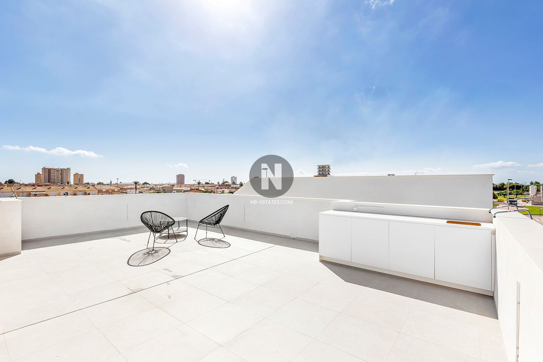 Alle Häuser sind ebenerdig, was den Alltag erleichtert und barrierearmes Wohnen ermöglicht. Das großzügige Solarium von ca. 44 m² bietet zusätzlichen Außenraum, um das mediterrane Klima das ganze Jahr über zu genießen.