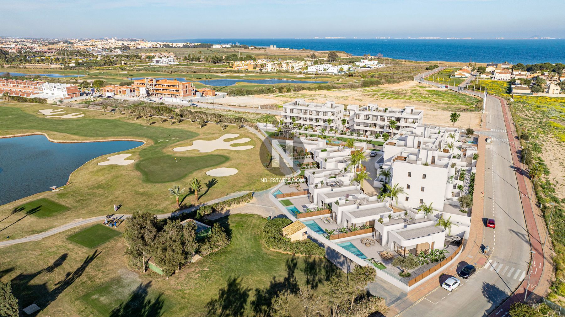 In Los Alcázares an der Costa Cálida in Murcia finden Sie moderne Neubauwohnungen in strategischer Lage zwischen Meer und Golf. Die Wohnungen liegen nur 300 Meter vom Mar Menor entfernt und sind auf die umliegende Landschaft und den Golfplatz ausgerichtet.