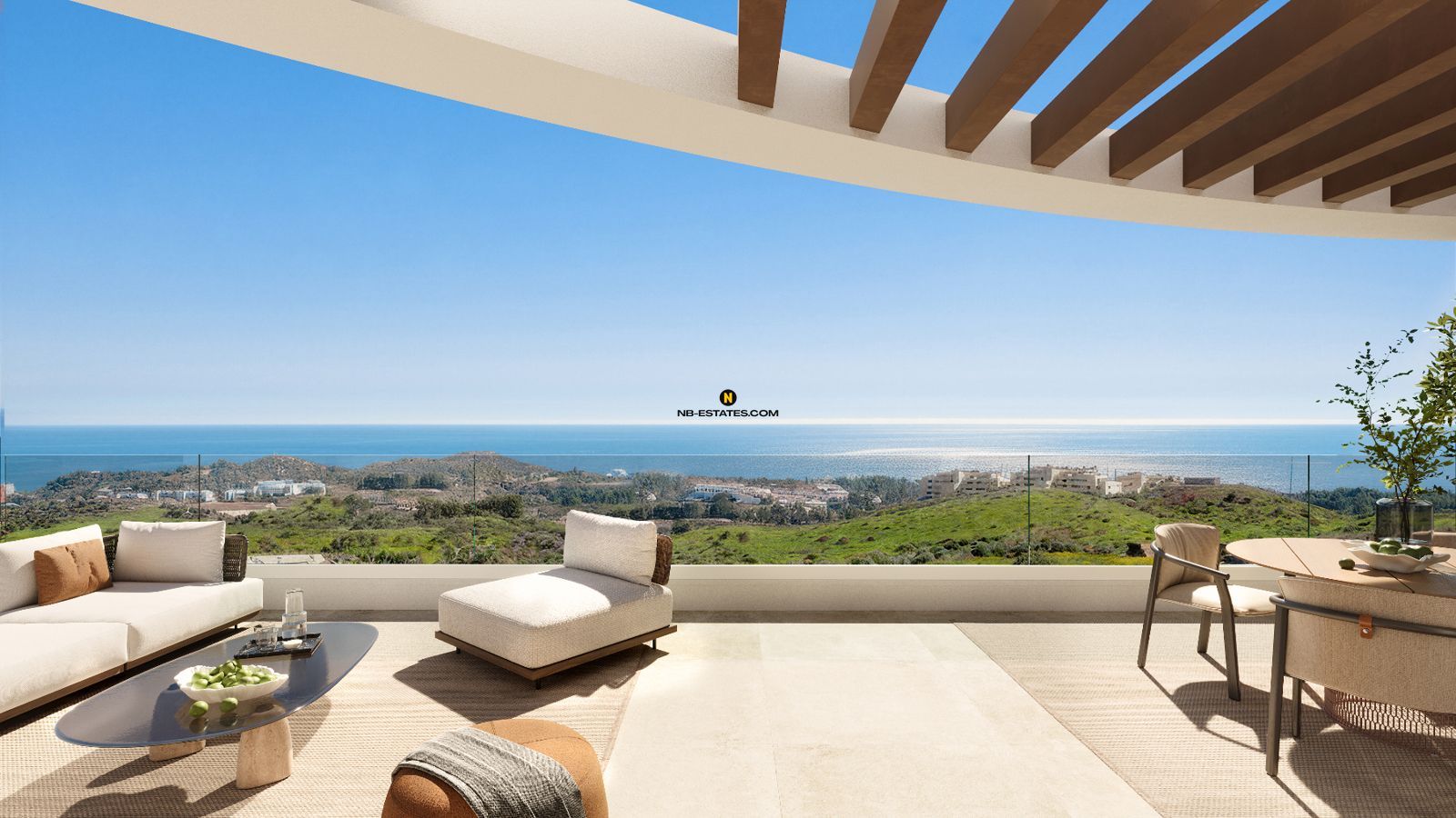 Diese Neubauwohnungen befinden sich in ruhiger Naturlage in Mijas an der Costa del Sol. Das Wohnkonzept verbindet moderne Architektur mit der umgebenden Landschaft und schafft ein harmonisches Gesamtbild. Durch die erhöhte Lage bieten die Wohnungen offene Ausblicke auf das Mittelmeer und die umliegende Natur.