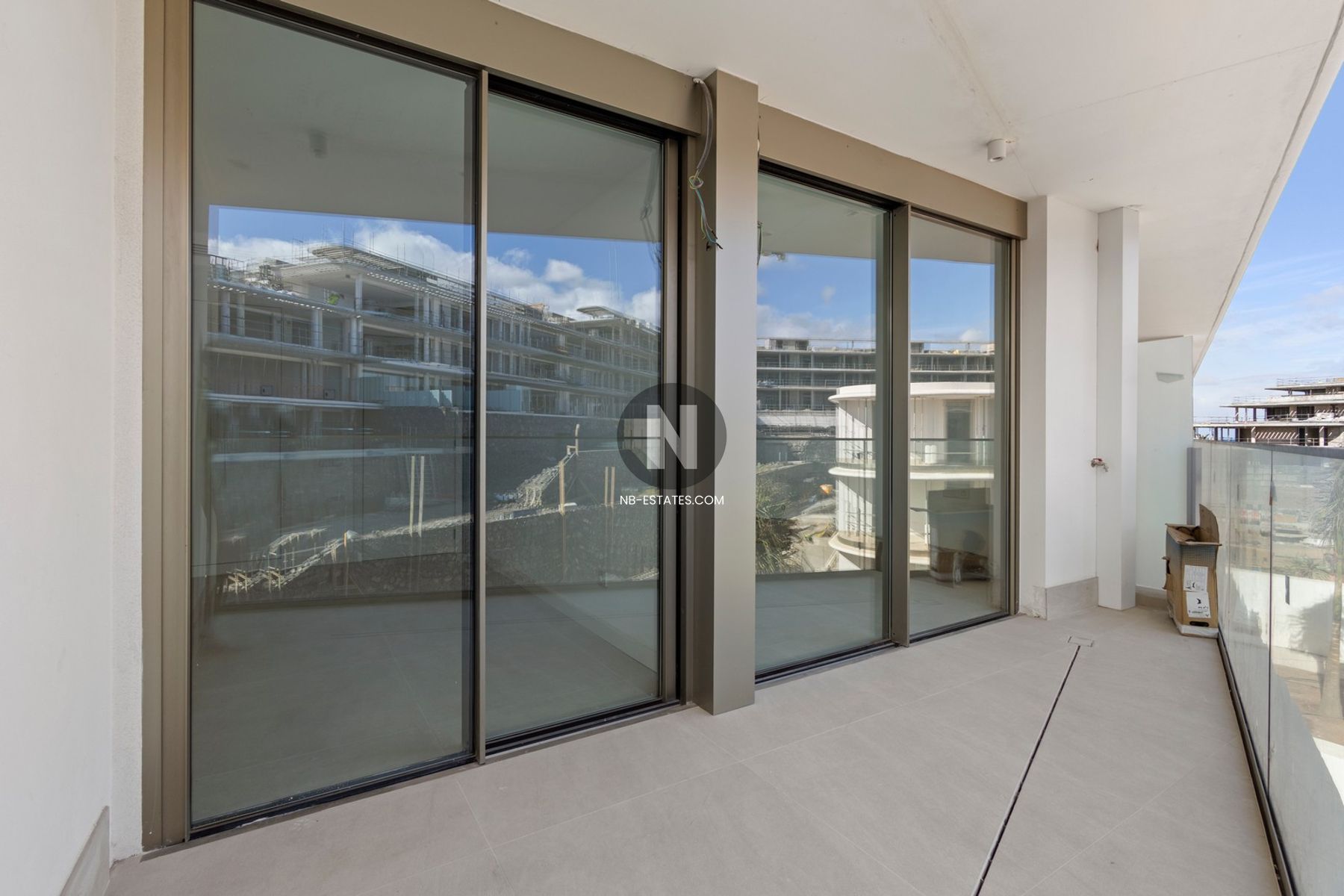 Dieses Penthouse besticht durch seine großzügige Breite. Der Wohnbereich ist nicht weniger als 41,15 m² groß, mit einer Fassadenbreite von ca. 8 m und direktem Zugang zur vorderen Terrasse von 28 m². Im hinteren Bereich befinden sich zwei Schlafzimmer, eines davon en suite, sowie ein Gäste-Badezimmer. Beide Schlafzimmer haben direkten Zugang zur hinteren Terrasse von 8,45 m².