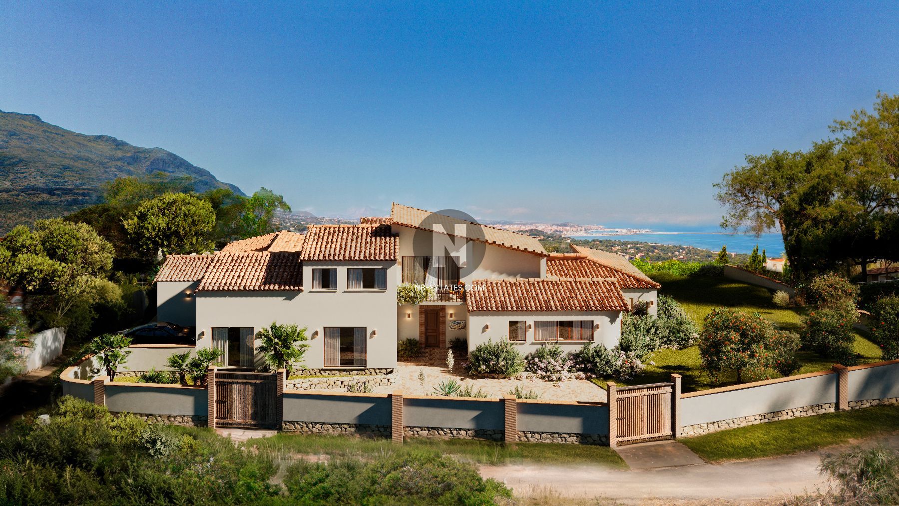 Diese beeindruckende freistehende Residenz befindet sich in den Höhenlagen von Las Rotas in Dénia, einer der begehrtesten Adressen an der Costa Blanca. Das Projekt umfasst eine umfassende Renovierung, die eine traditionelle andalusische Seele mit einer hochwertigen, zeitgenössischen Ausstattung verbindet. Mit einer bebauten Fläche von 792 m² auf einem Grundstück von fast 1.900 m² bietet dieses Anwesen eine seltene Kombination aus Privatsphäre, Weitläufigkeit und einem 360-Grad-Blick über das Meer, das Montgó-Massiv und den historischen Hafen.