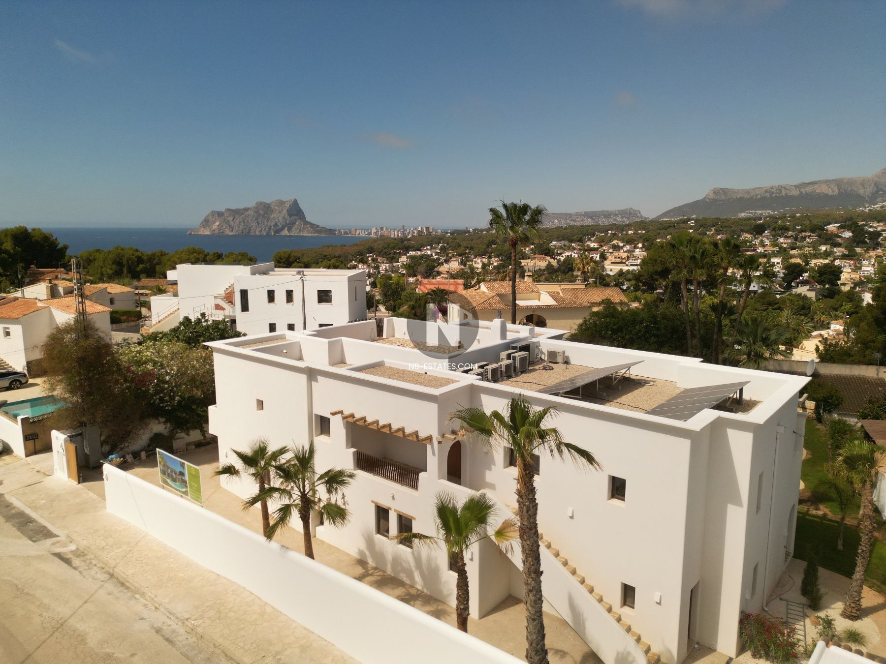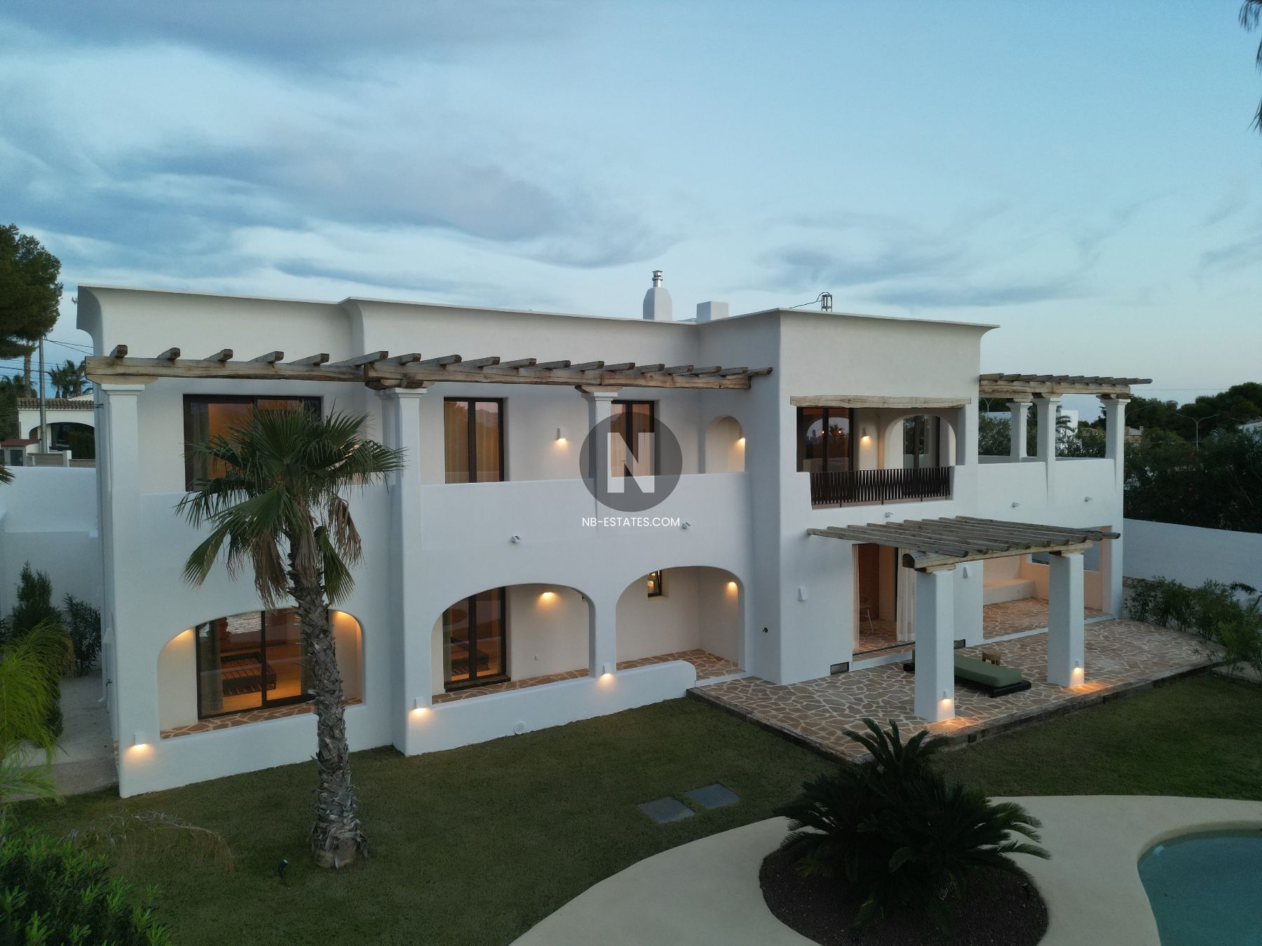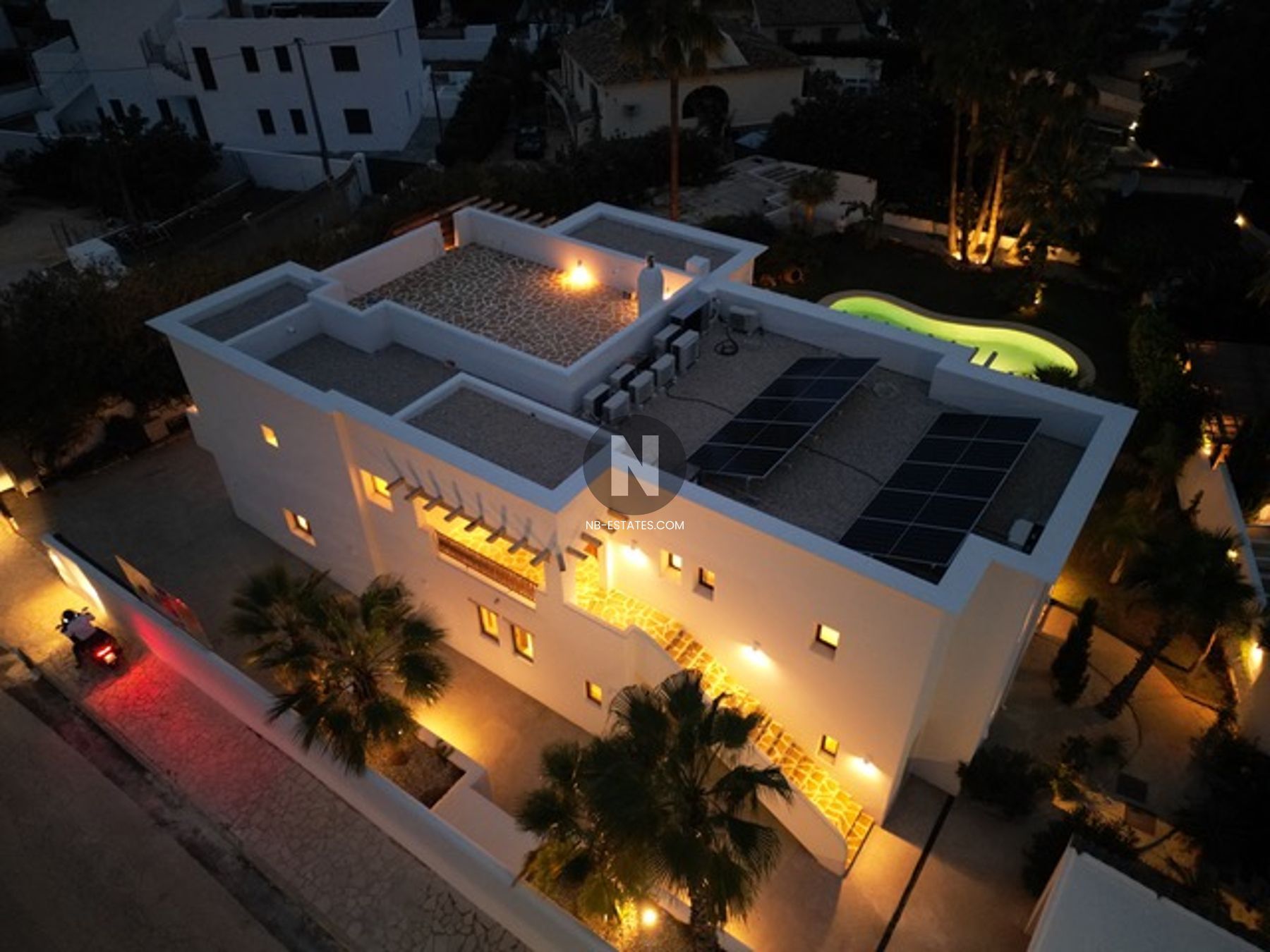 This modern villa is located in a quiet residential area in Benissa Costa, within short distance of the sea and local amenities. Built in 2024, the property offers a constructed area of 496 m² on a plot of 1,252 m². Thanks to its layout and elevated position, the villa enjoys open views of the Mediterranean Sea and surrounding area.