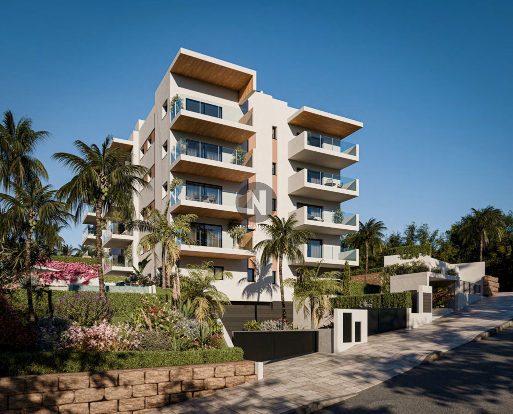 Discover a new residential project with 2, 3 and 4 bedroom flats and penthouses. The ground floor flats, spread over five three-storey blocks, offer private gardens and the option of a private pool. Penthouse flats have an impressive 108 m² solarium and terrace space. All properties include parking space.