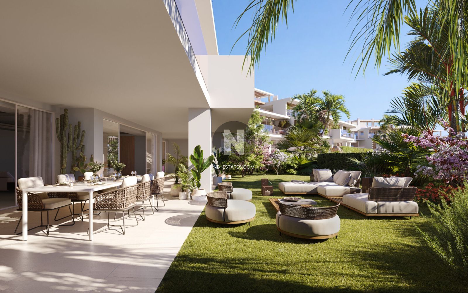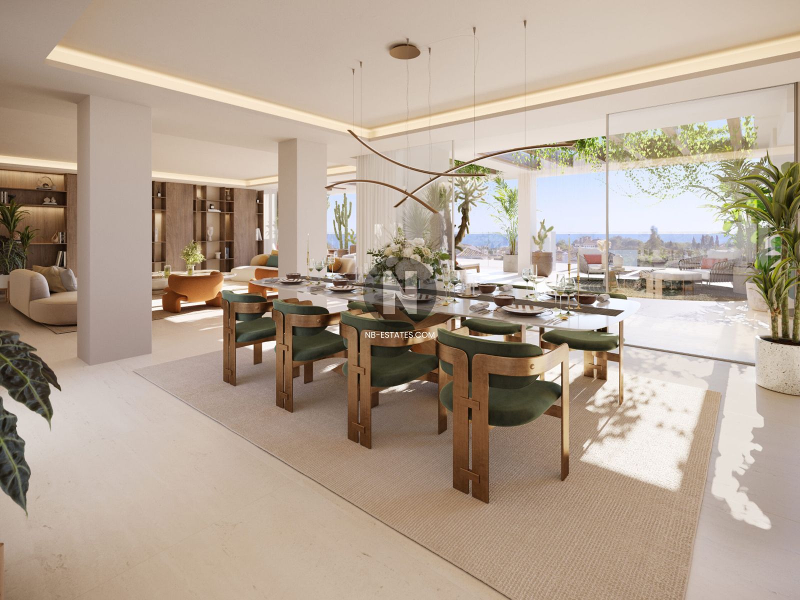 The 3- and 4-bedroom garden residences feature expansive open-plan living areas filled with natural light. Floor-to-ceiling sliding doors connect seamlessly to private landscaped gardens and shaded terraces. Each apartment includes its own private swimming pool — a rare privilege on the Golden Mile.