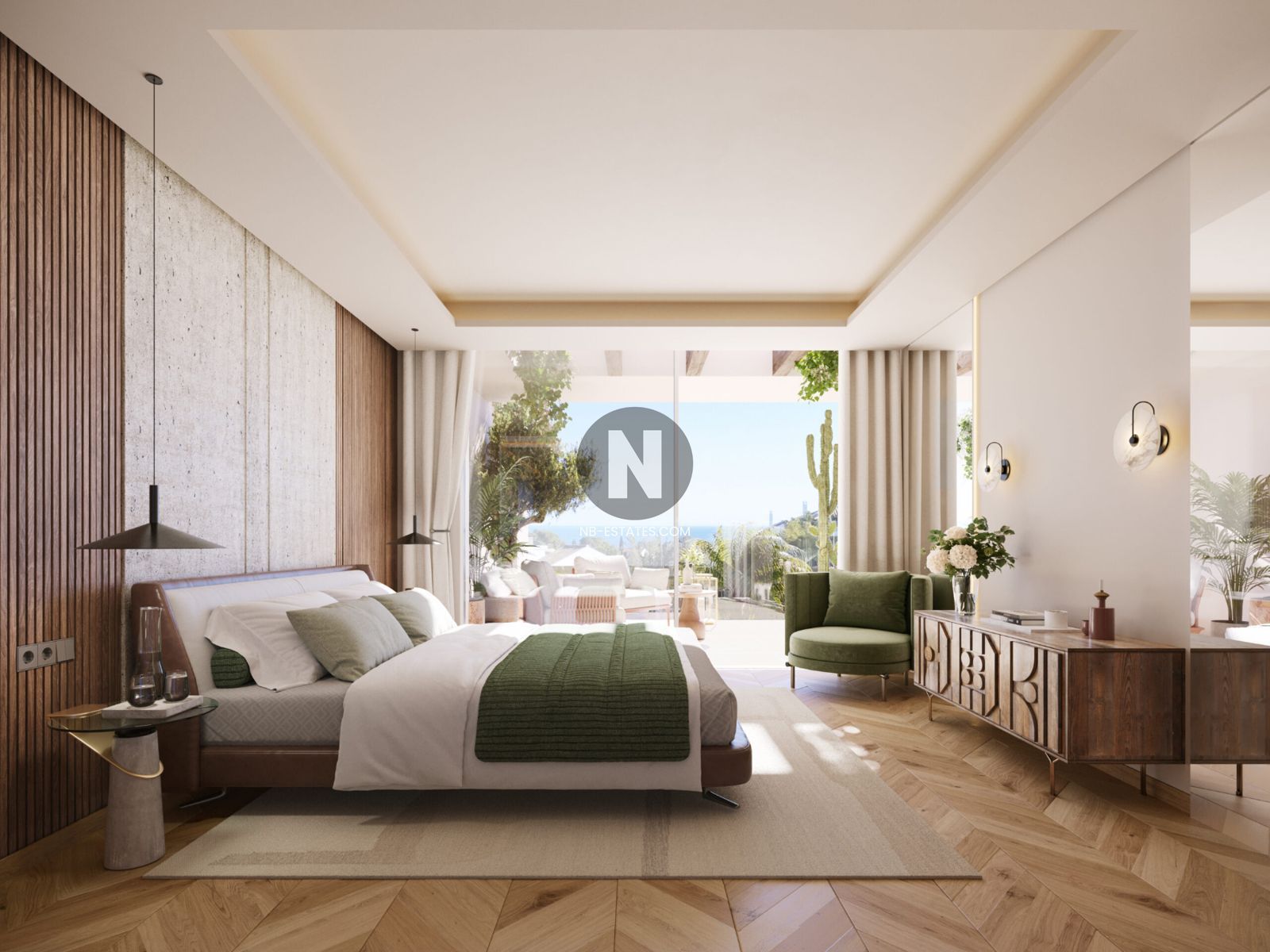 All bedrooms are en-suite, ensuring comfort and discretion. The master suite opens directly onto the garden, redefining indoor-outdoor living.