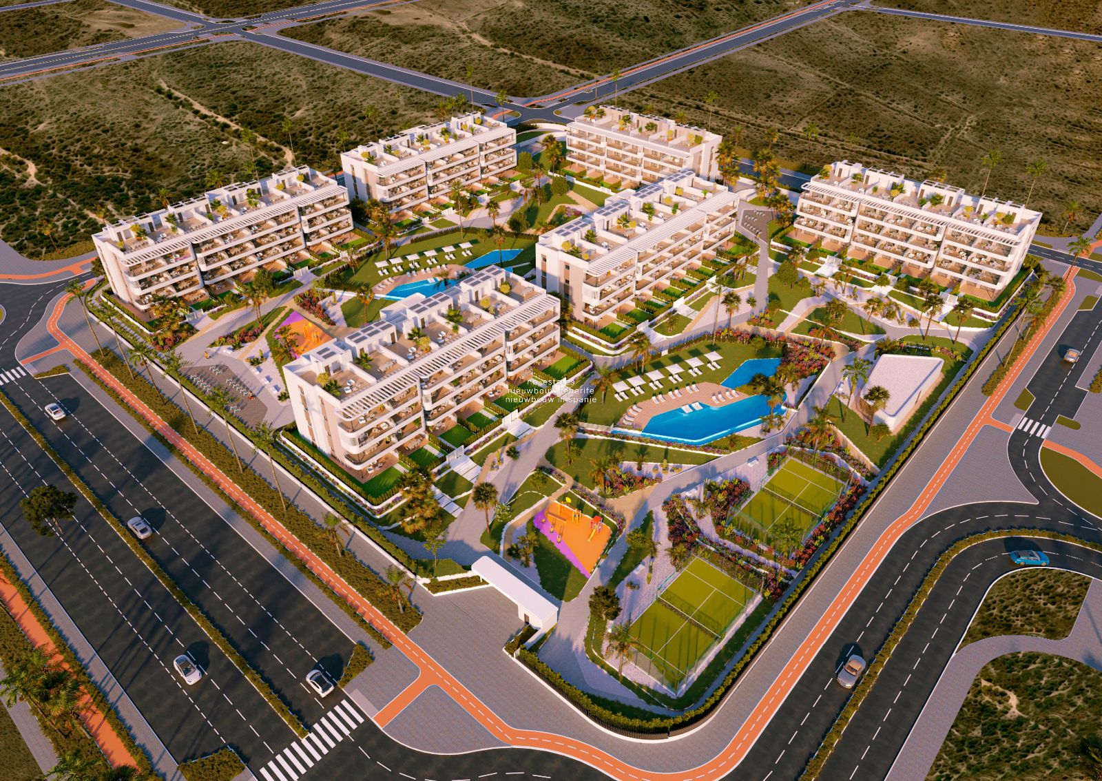 In the southern area of Torrevieja, close to beaches, shops and essential services, a modern residential resort is taking shape with contemporary new-build apartments. The gated development consists of several low-rise blocks surrounded by landscaped green areas and comprehensive leisure facilities. You can choose between 2 or 3-bedroom apartments, each with a terrace, private garden or rooftop solarium.
