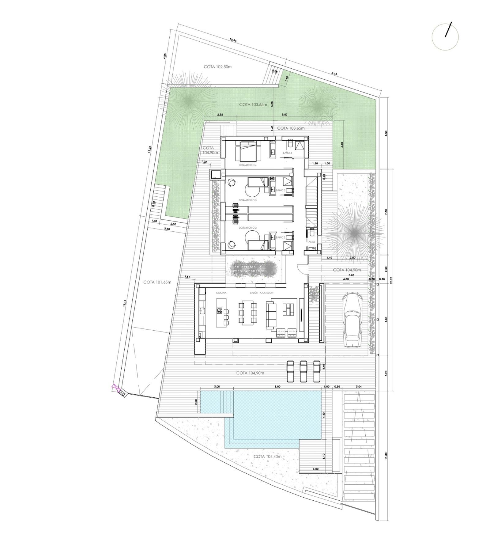 - Superficie construida de 390 m² y parcela privada de 809 m²