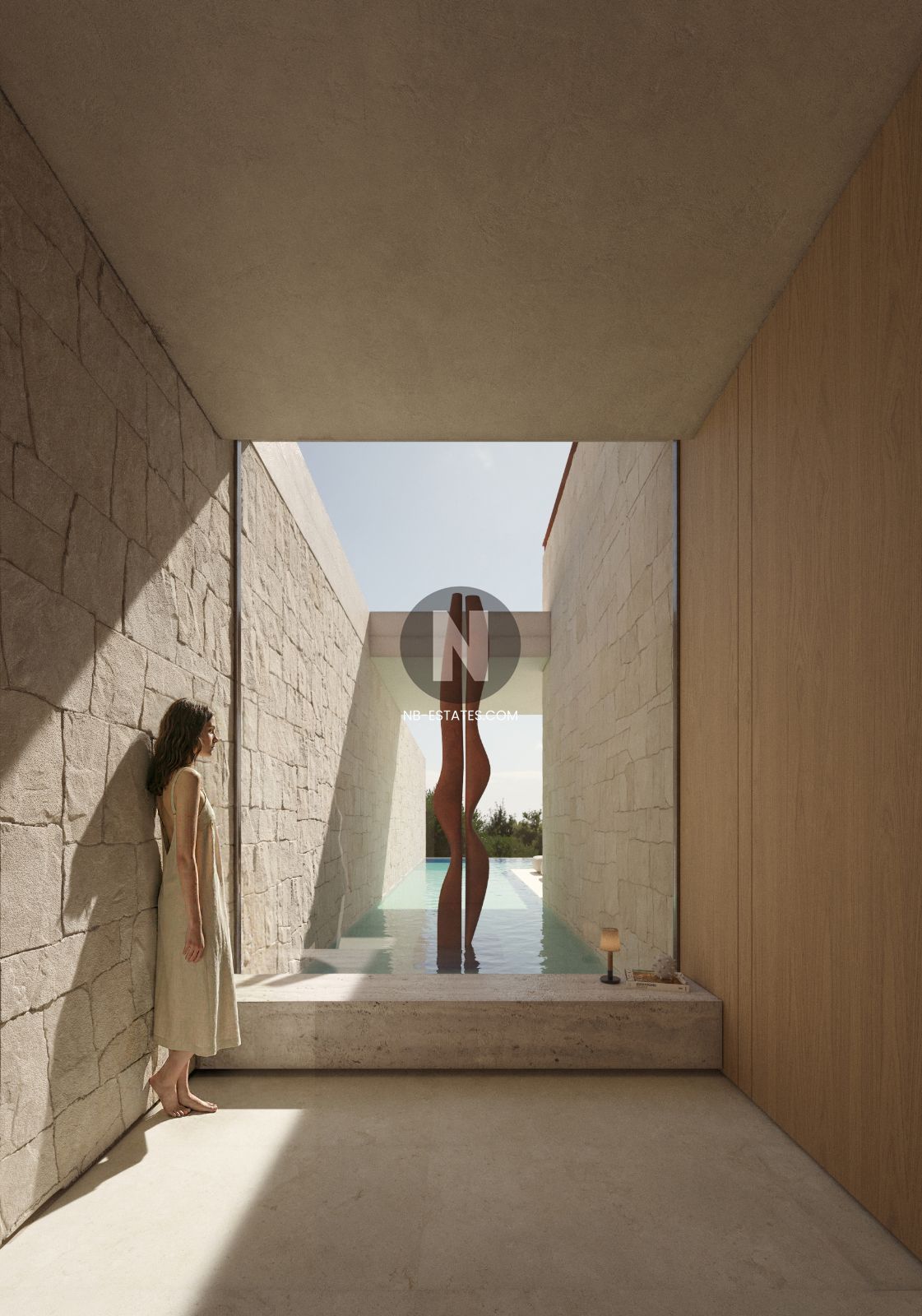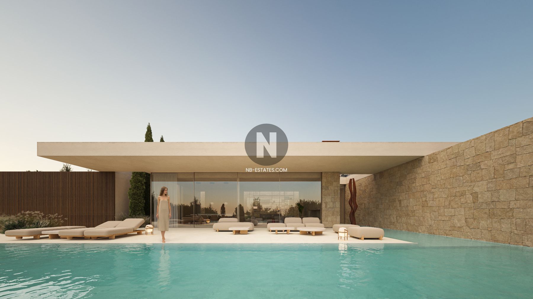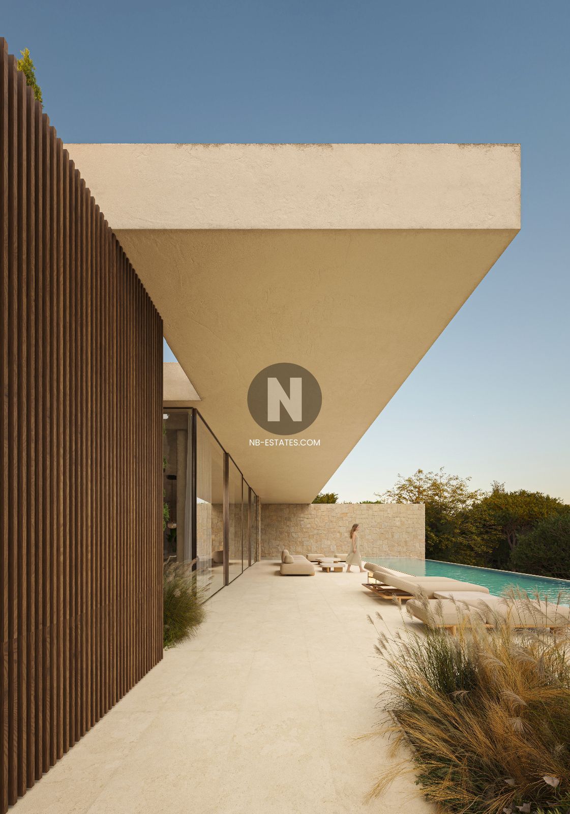 La villa ha sido diseñada para aprovechar al máximo la conexión entre interior y exterior. Los grandes ventanales permiten una entrada abundante de luz natural y crean una transición fluida hacia las terrazas y la zona de piscina. La piscina infinity ofrece vistas abiertas al entorno, aportando una sensación de amplitud y tranquilidad.