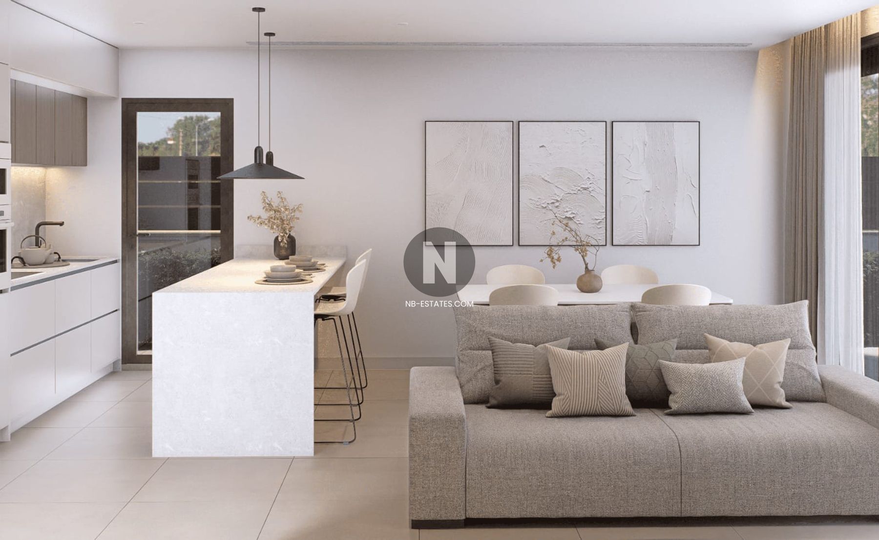 Las viviendas están diseñadas para ofrecer luz, amplitud y funcionalidad. Grandes ventanales conectan interior y exterior. El salón se abre al jardín y la piscina, mientras que los dormitorios ofrecen acceso a terrazas privadas.