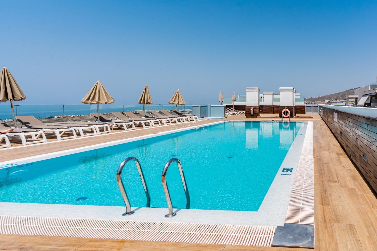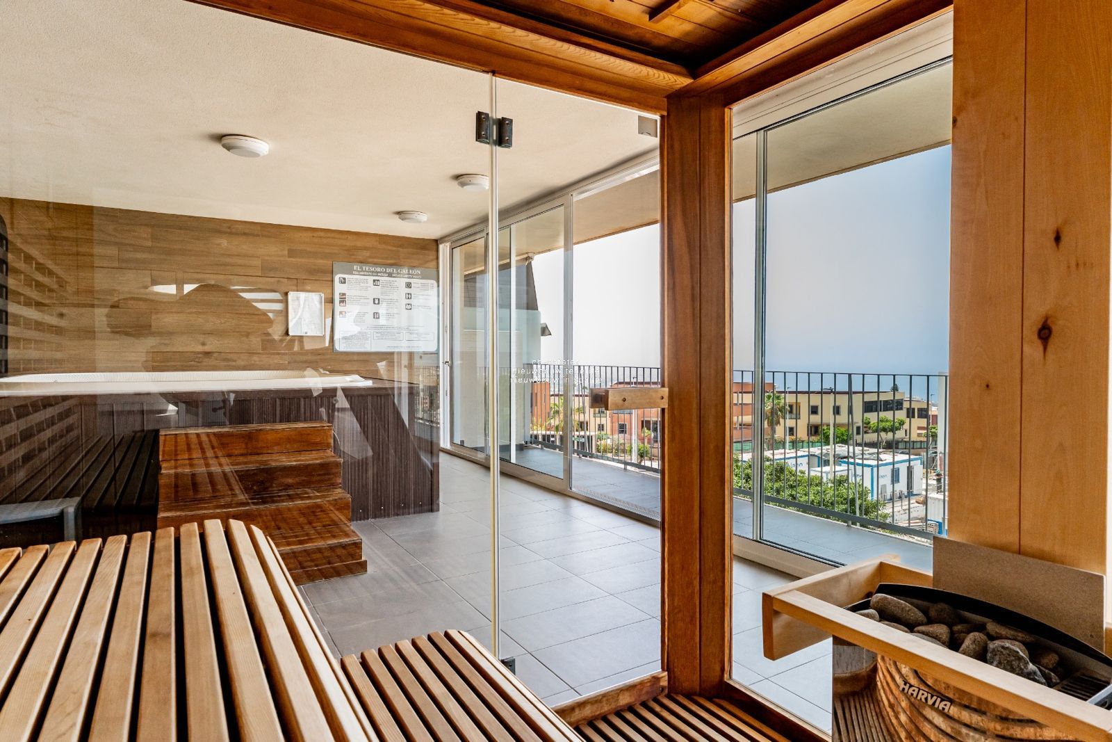 El complejo ofrece instalaciones premium: piscina en la azotea con solárium, jardines, sauna, jacuzzi, gimnasio y aparcamiento comunitario.