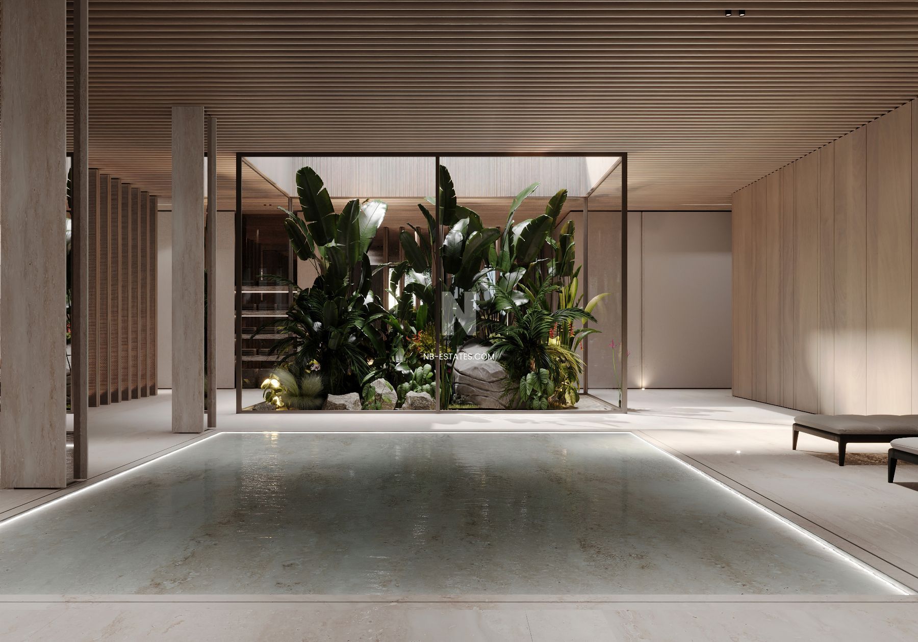Lo que verdaderamente distingue este proyecto del resto de la oferta de lujo en la Costa del Sol es su servicio hotelero completamente integrado, disponible 365 días al año, las 24 horas del día — sin interrupciones estacionales. Un equipo permanente de 12 profesionales de la hospitalidad, gestionado por un reconocido operador de lifestyle, ofrece conserjería, limpieza del hogar, servicio de aparcacoches y chef privado, todos reservables a través de una app exclusiva. Los 1.400 m² de instalaciones incluyen un spa de 700 m² con piscina interior climatizada de 23,5 m, gimnasio Technogym, sala de pilates y yoga, sala de masajes, salón de belleza, cine privado, simulador de golf, sala de experiencias culinarias y una piscina infinita en azotea de 17 metros con vistas panorámicas al Mediterráneo, África y Gibraltar. En planta baja, un jardín privado de 2.000 m² ofrece un refugio tranquilo, y los residentes gozan de acceso exclusivo a un beach club privado a solo un minuto a pie.