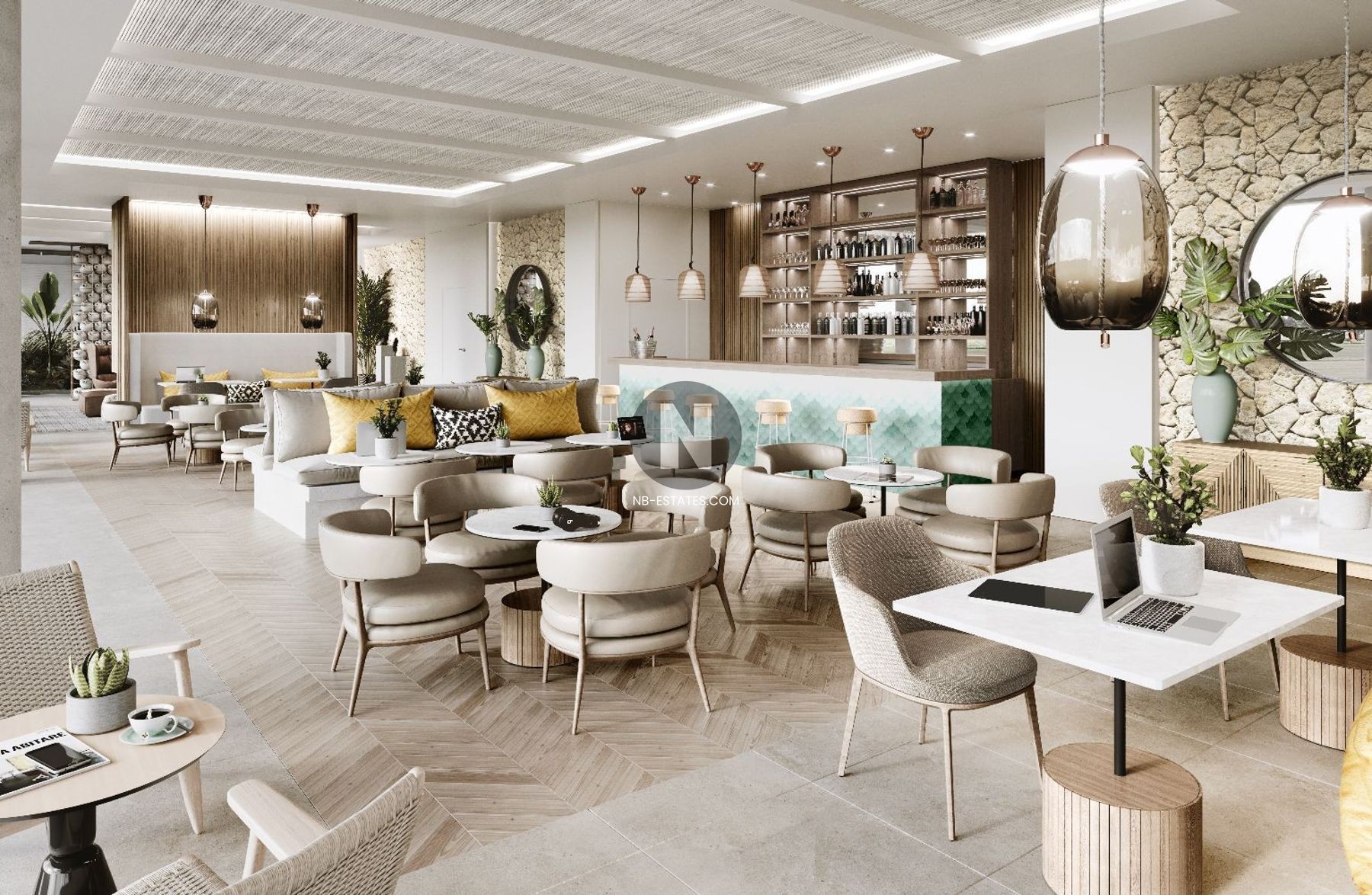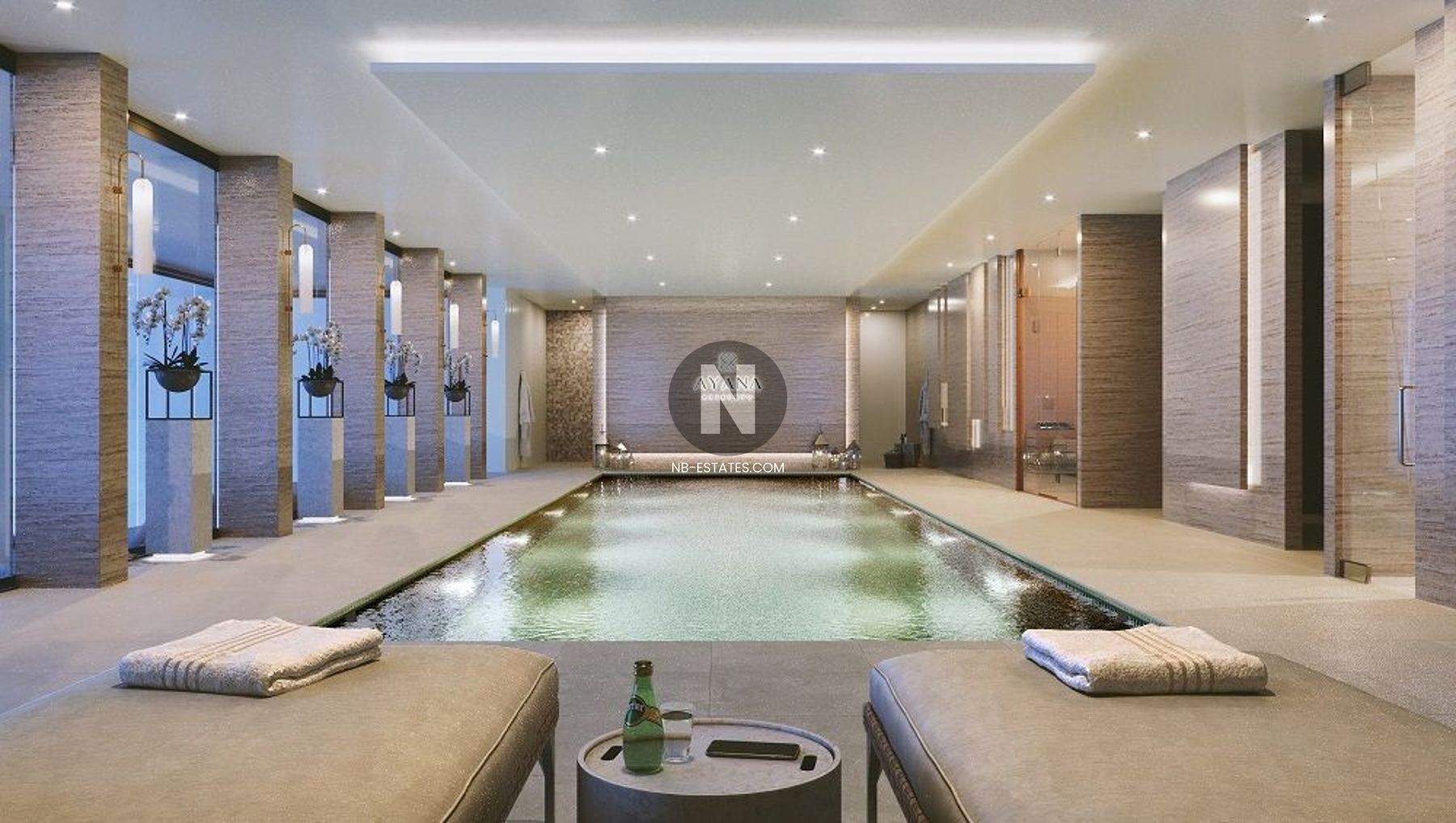La résidence est entourée de 27 000 m² de jardins tropicaux aménagés, offrant calme et intimité. Les résidents profitent de trois piscines extérieures, dont une chauffée, ainsi que d’un spa, d’une piscine intérieure et d’une salle de sport. Un clubhouse central propose un espace lounge, un café et un espace de co-working.