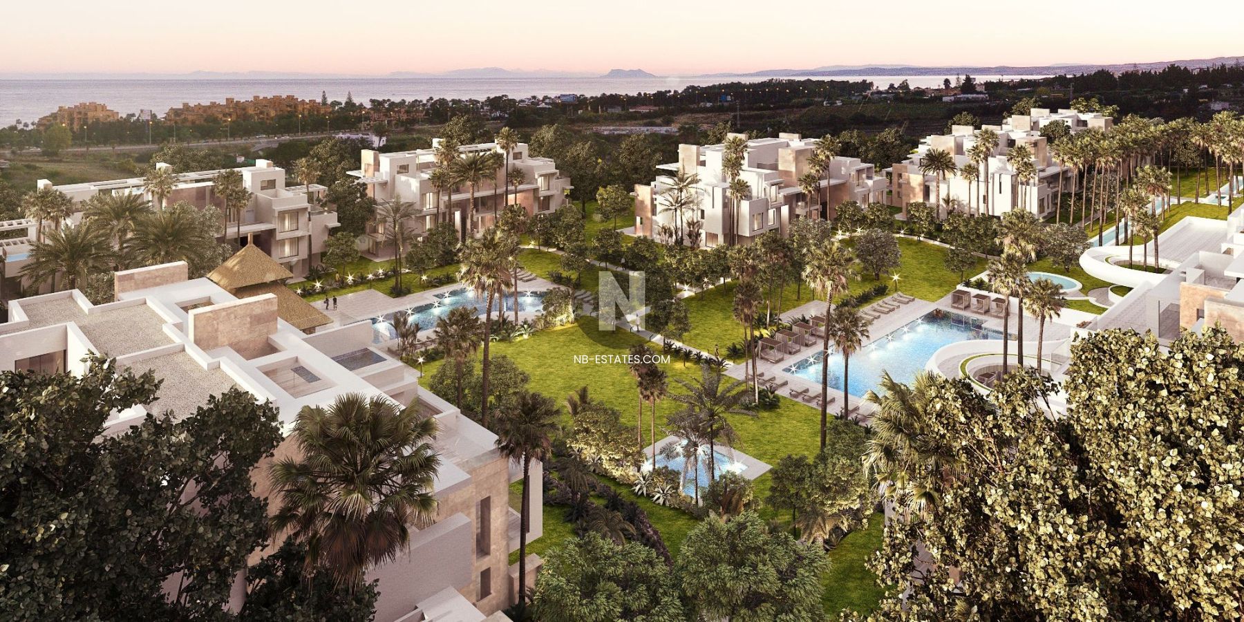 Situés dans un environnement calme et verdoyant à Estepona, ces appartements neufs offrent un cadre de vie en harmonie avec le style de vie détendu de la Costa del Sol. Les logements sont conçus pour s’intégrer naturellement dans leur environnement, avec de grandes terrasses et des espaces lumineux.