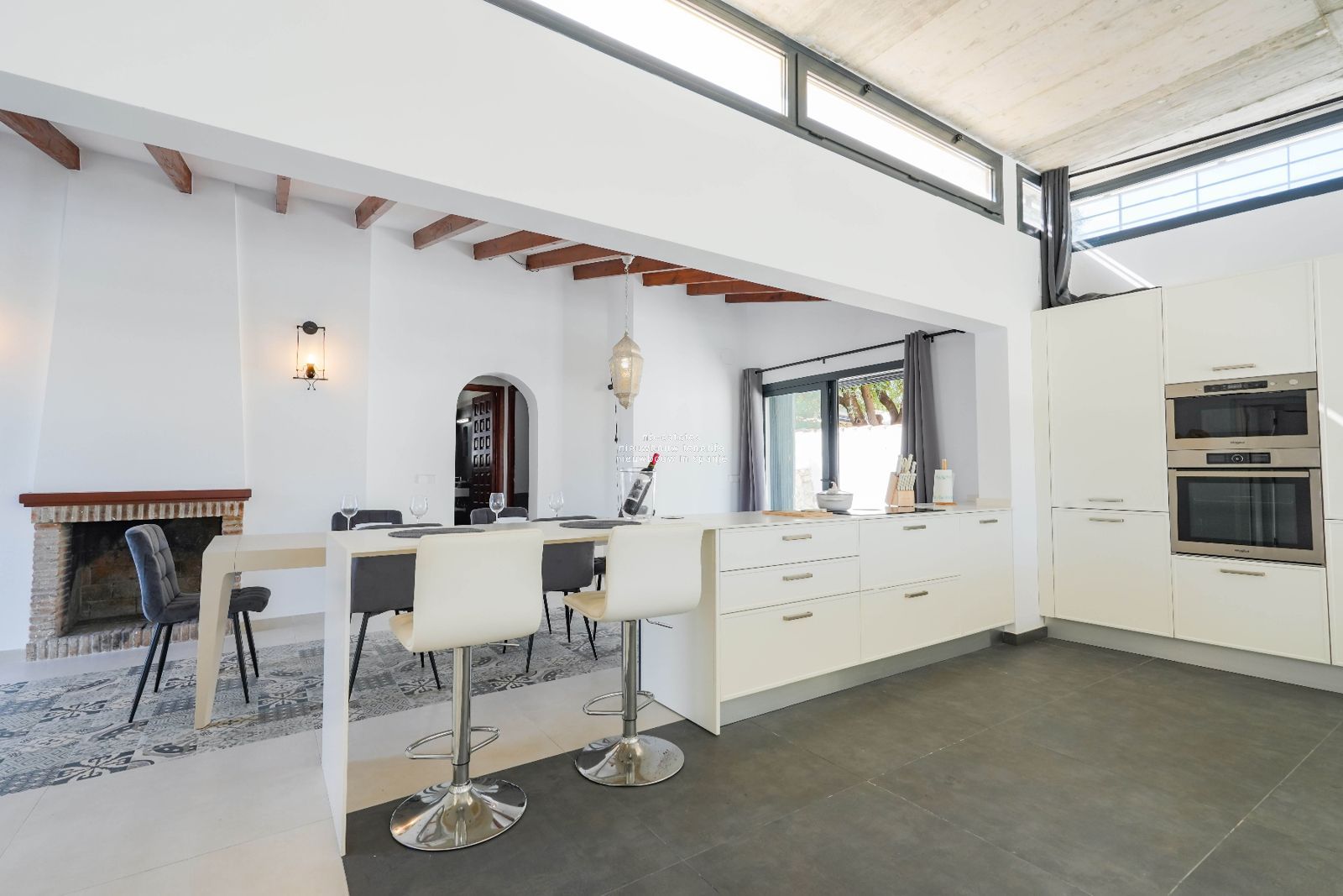 À l’intérieur, la maison offre une atmosphère chaleureuse et contemporaine. Les grandes fenêtres relient harmonieusement les espaces intérieurs et extérieurs, permettant de profiter du climat méditerranéen toute l’année. Le niveau inférieur offre une surface polyvalente idéale pour accueillir des invités ou créer un espace de détente personnalisé.