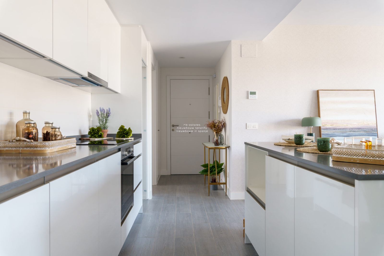 - Keukens met eiland, geïntegreerd in de leefruimte