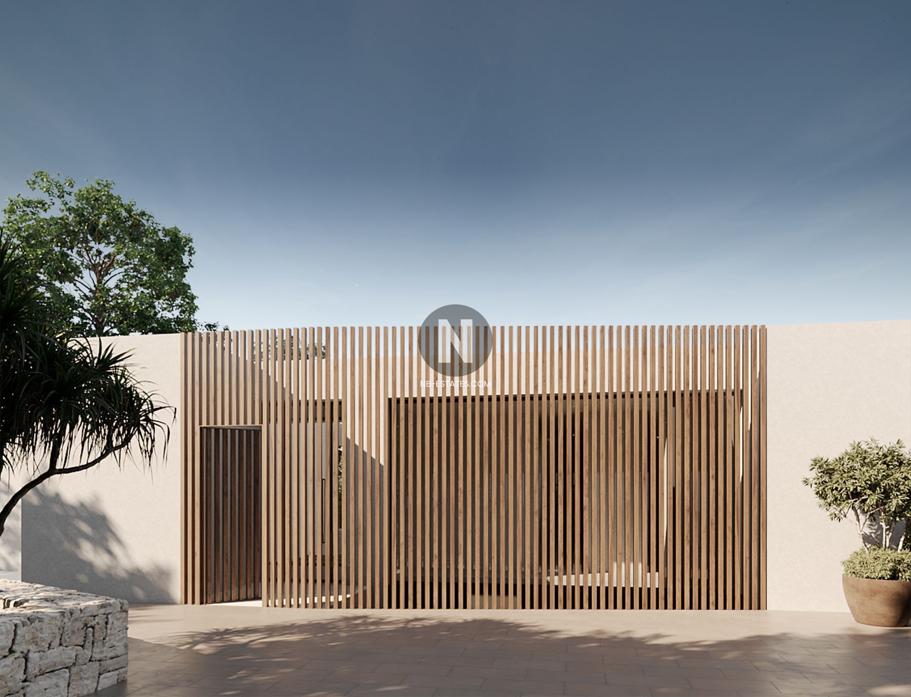 De woning is ontworpen met een open leefconcept waarbij woonkamer, eetruimte en keuken in elkaar overlopen. Grote schuiframen zorgen voor veel daglicht en bieden directe toegang tot het terras en de buitenruimtes. Hierdoor ontstaat een aangename overgang tussen binnen en buiten, ideaal om optimaal te genieten van het mediterrane klimaat.