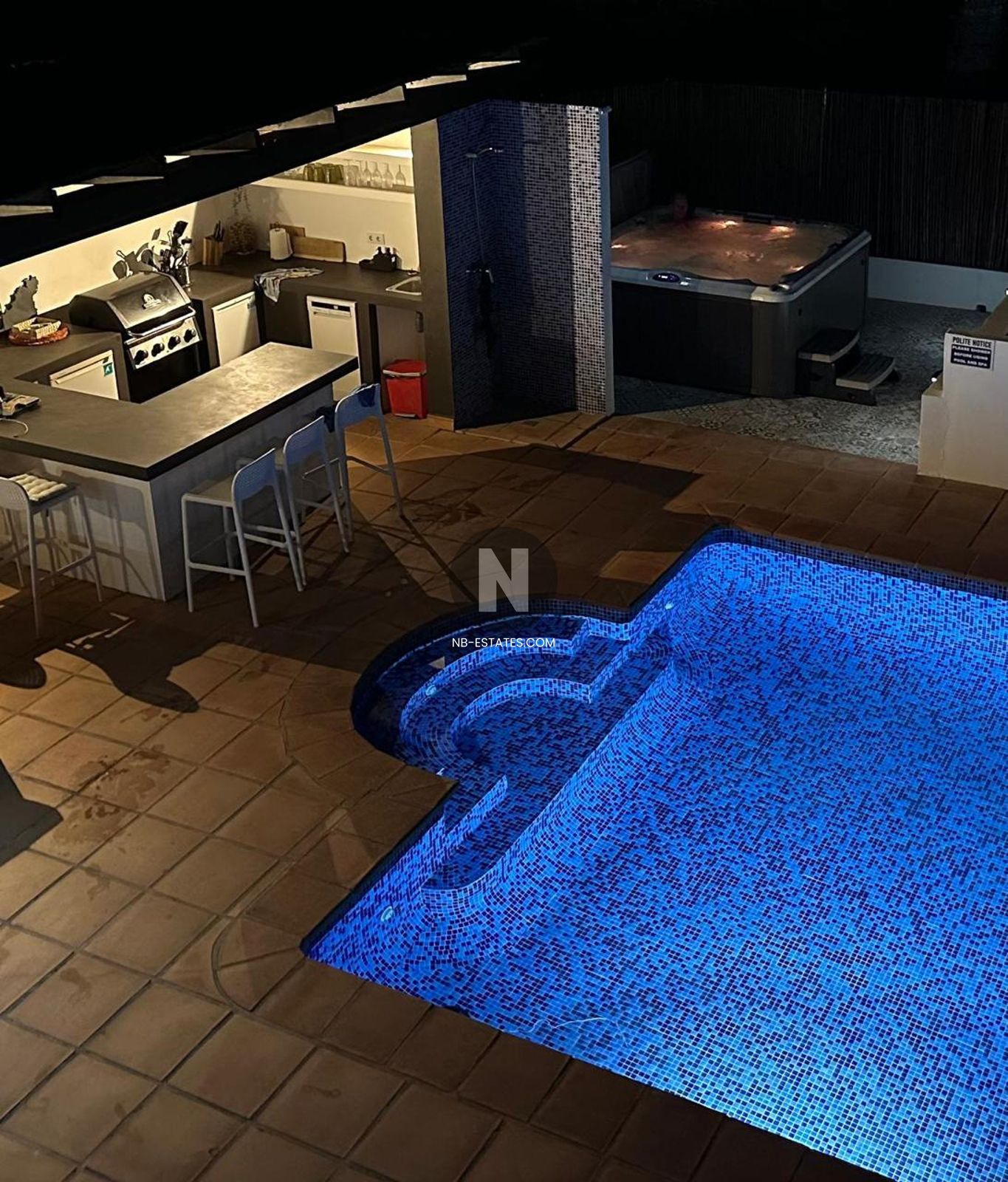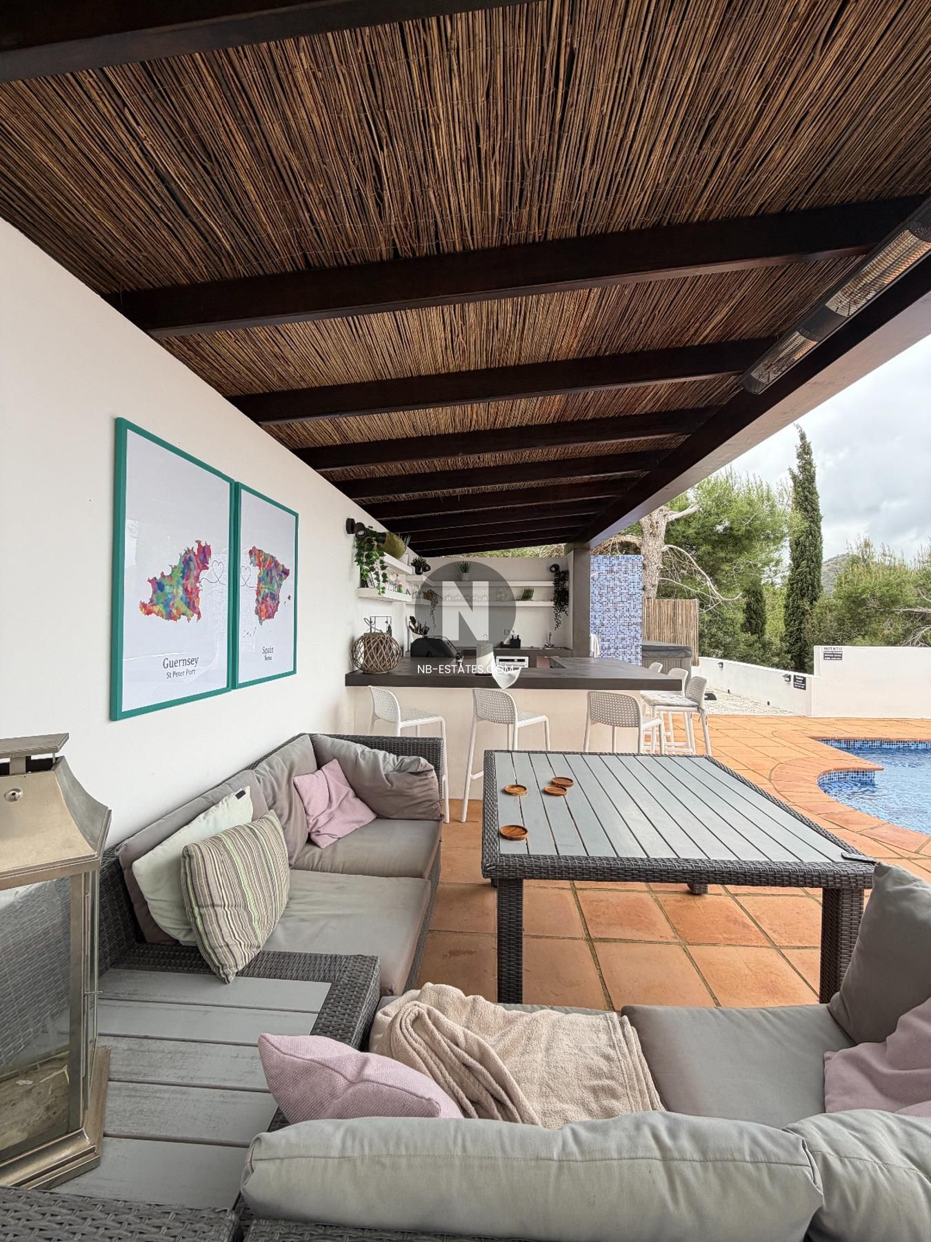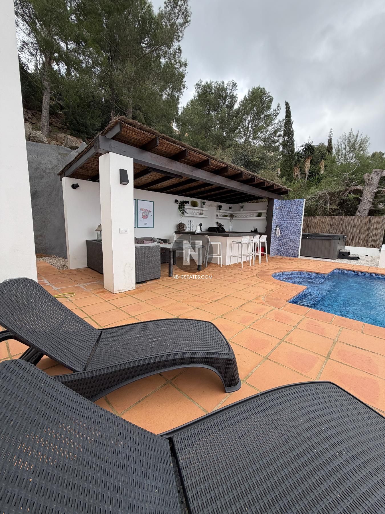 De woning is verdeeld over twee verdiepingen en biedt een praktische indeling met ruime leefzones en veel natuurlijk licht. De buitenruimte bestaat uit een privé tuin, zwembad en verschillende terrassen, waardoor u optimaal gebruik maakt van het mediterrane klimaat. Extra comfort wordt geboden door voorzieningen zoals dubbele beglazing, ingebouwde kasten, een open haard en een beveiligde toegang.