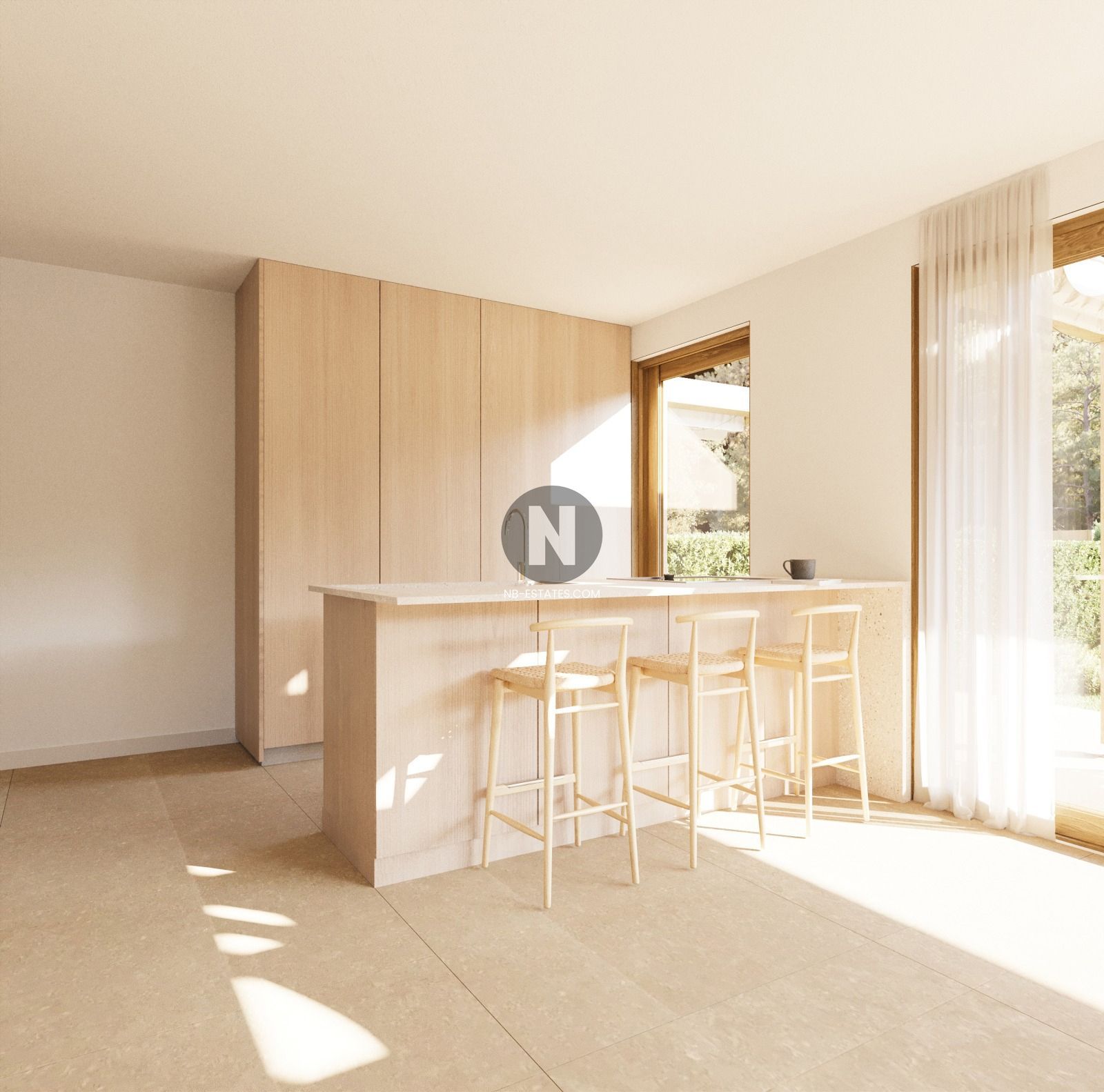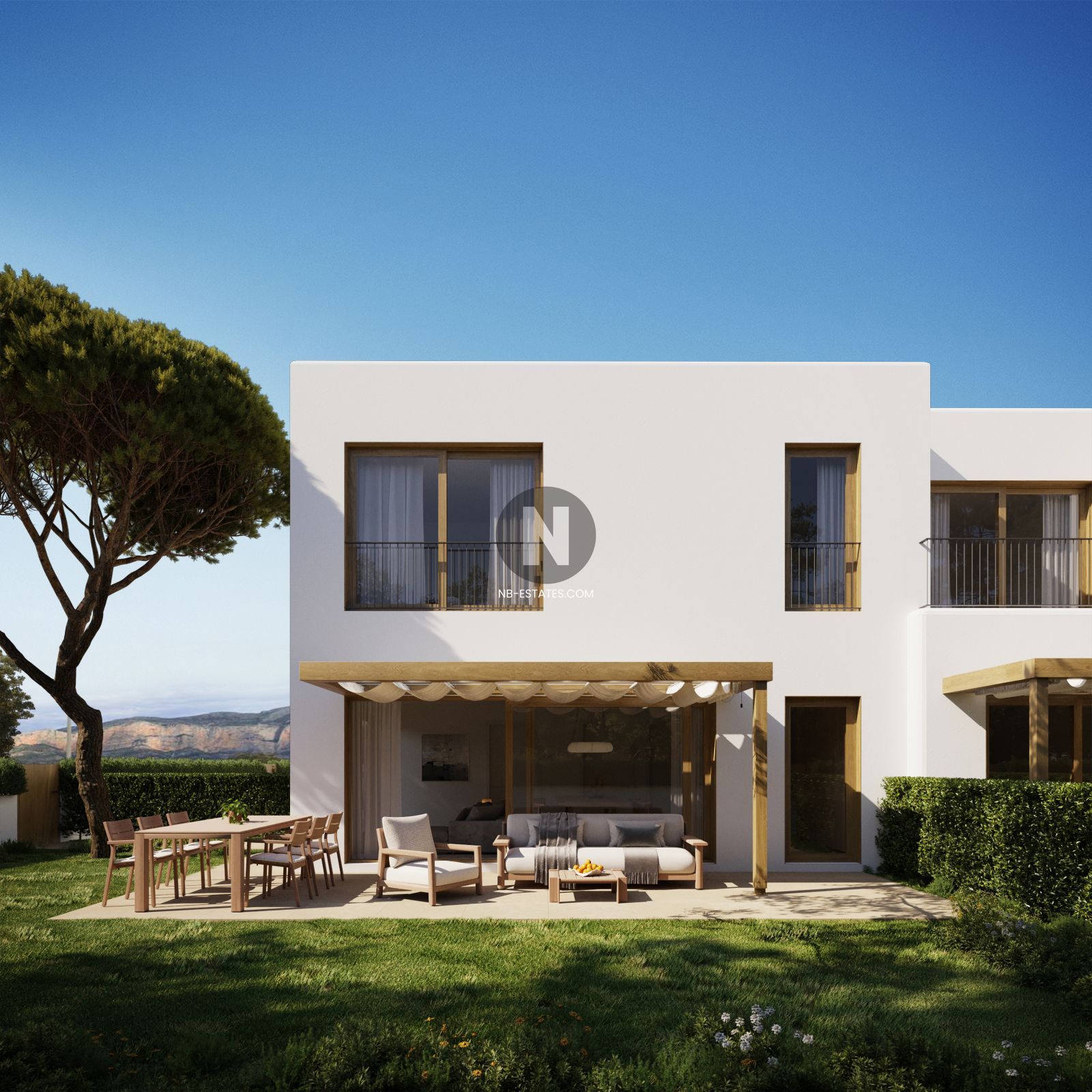 De woningen zijn praktisch ingedeeld met een ruime leefruimte op de begane grond en slaapkamers op de eerste verdieping. Grote ramen zorgen voor natuurlijke lichtinval en een vloeiende verbinding met het terras. De buitenruimte biedt plaats voor tuin, loungehoek of een privézwembad, zodat u optimaal van het Mediterrane klimaat kunt genieten. In de kelder beschikt u over een afgesloten parkeerplaats en extra opslagruimte – een duidelijke meerwaarde voor comfort en veiligheid.