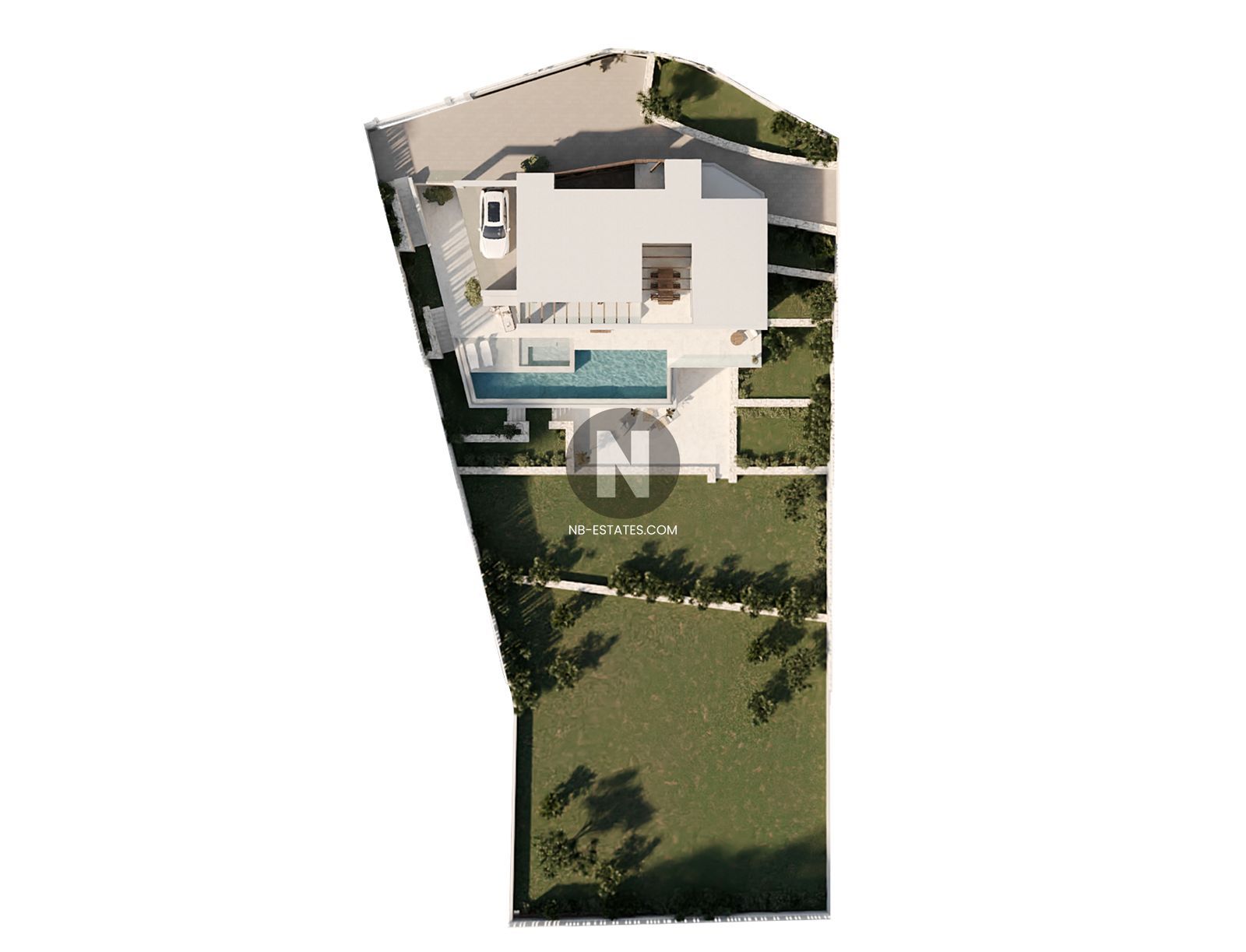Het ontwerp van de villa kenmerkt zich door strakke lijnen en het gebruik van duurzame materialen. Op de begane grond vindt u de leefruimtes waar grote glaspartijen zorgen voor een directe verbinding met het terras en het zwembad. De bovenverdieping herbergt de overige slaapkamers, die elk toegang bieden tot een terras met uitzicht. Dankzij de ruime opzet van de kelderverdieping is er voldoende flexibiliteit om extra ruimtes zoals een fitnessruimte, thuisbioscoop of extra gastenverblijf in te richten.