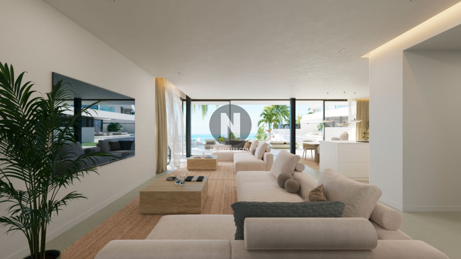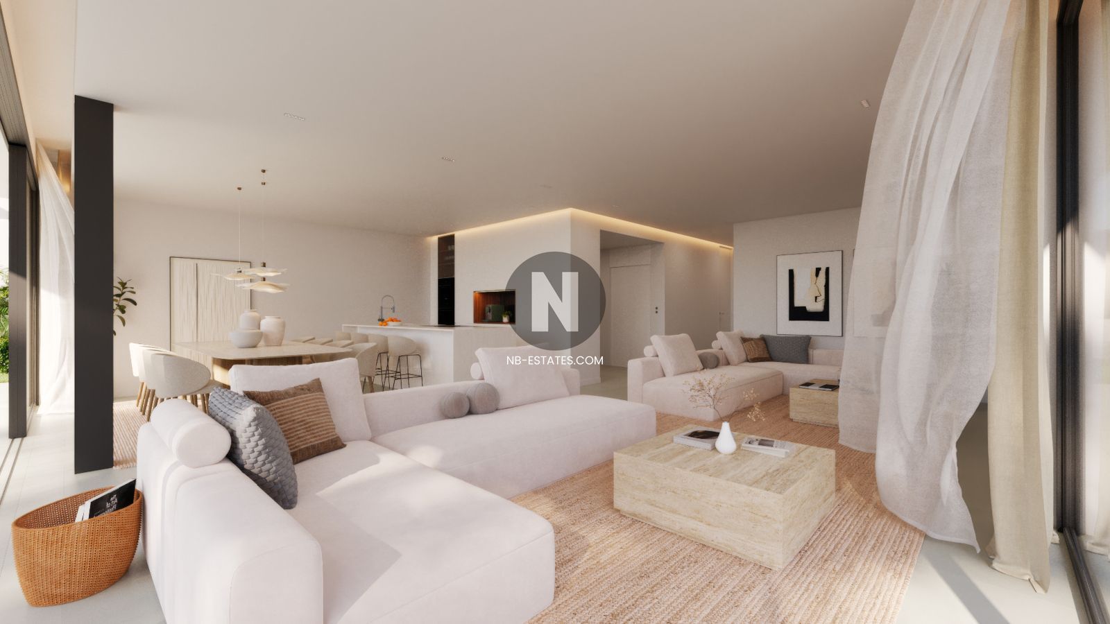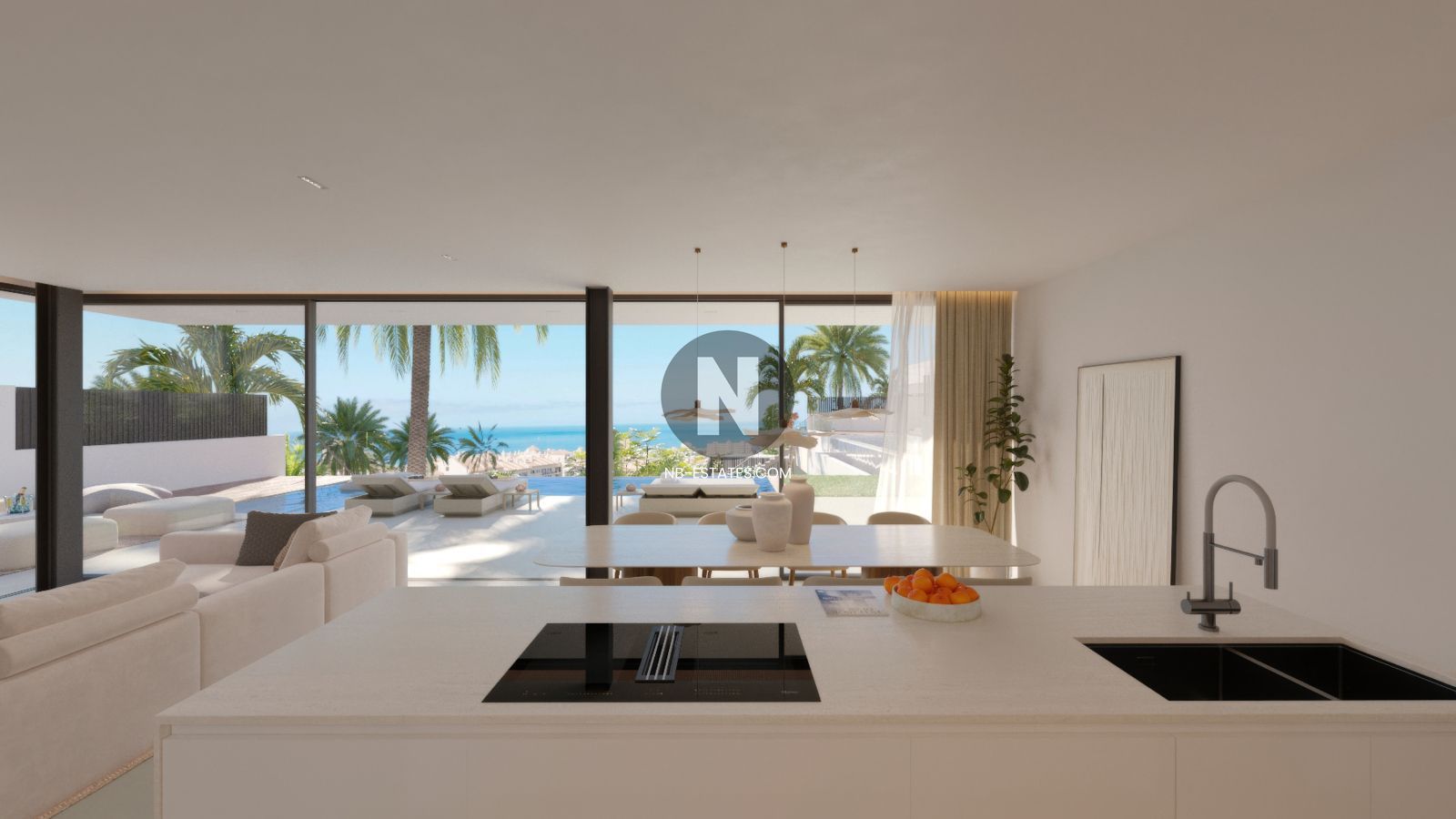 Het ontwerp kenmerkt zich door een open indeling waarbij de woon- en eetkamer op de begane grond naadloos overgaan in de buitenruimte via plafondhoge ramen. Op deze verdieping bevindt zich tevens een eerste slaapkamer met directe toegang tot de tuin. De bovenverdieping herbergt de master bedroom met een eigen dressing en nog twee extra slaapkamers, allen met eigen sanitaire voorzieningen. Het ruime dakterras biedt een panoramisch uitzicht over de omgeving en de oceaan.