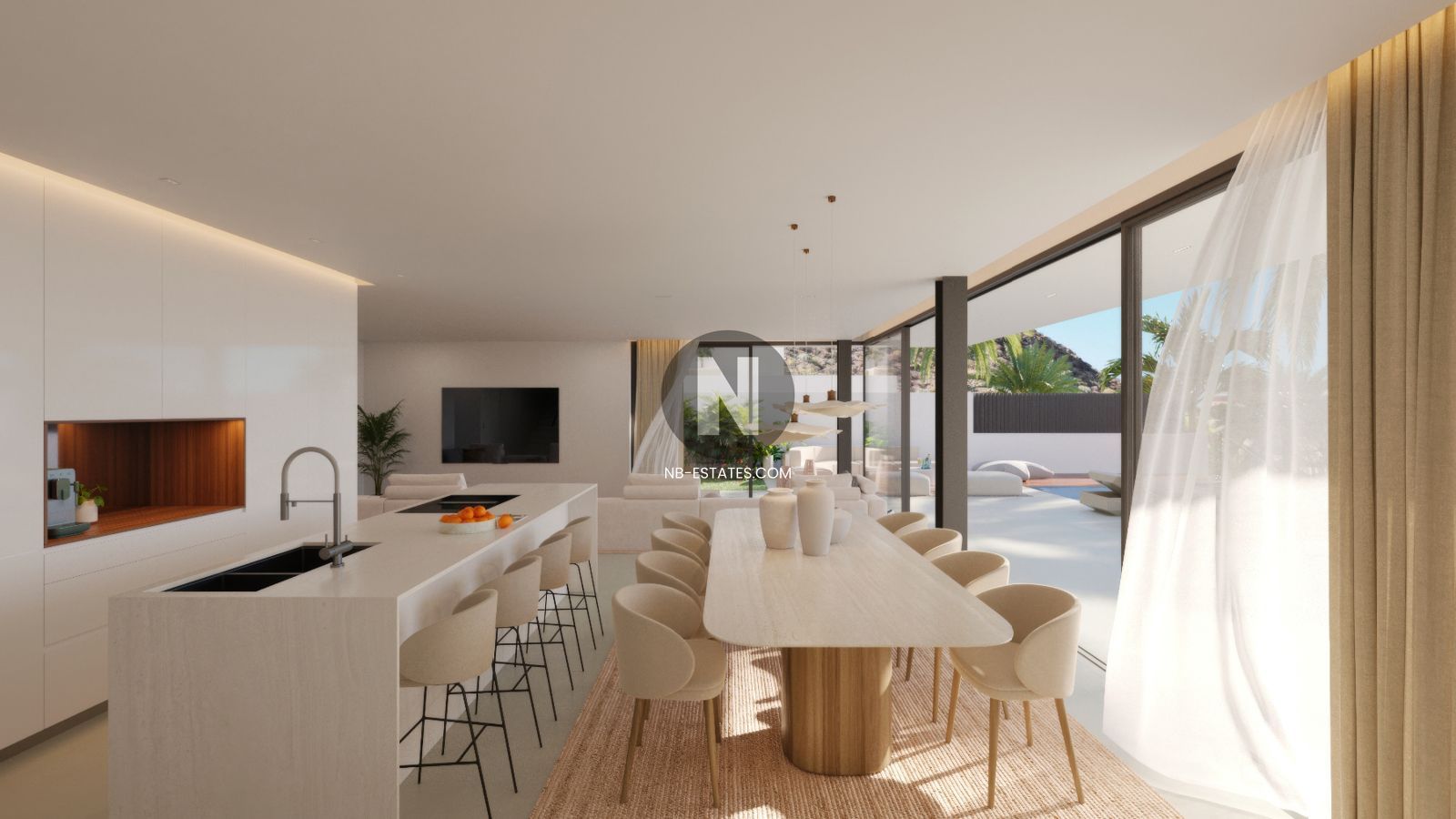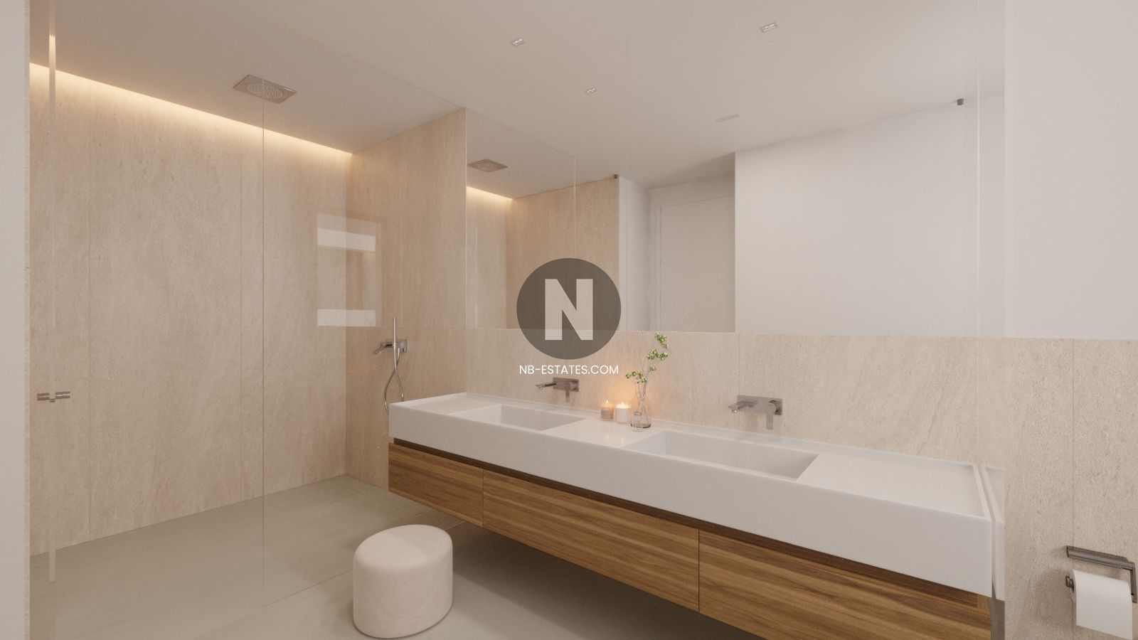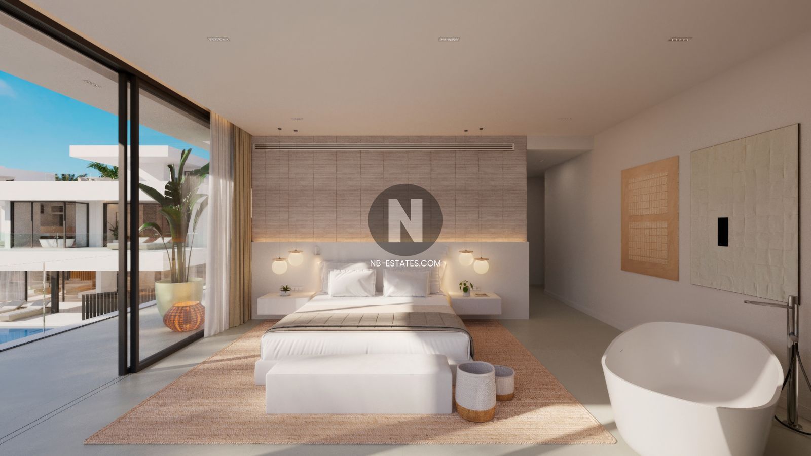 Het ontwerp kenmerkt zich door een open indeling waarbij de woon- en eetkamer op de begane grond naadloos overgaan in de buitenruimte via plafondhoge ramen. Op deze verdieping bevindt zich tevens een eerste slaapkamer met directe toegang tot de tuin. De bovenverdieping herbergt de master bedroom met een eigen dressing en nog twee extra slaapkamers, allen met eigen sanitaire voorzieningen. Het ruime dakterras biedt een panoramisch uitzicht over de omgeving en de oceaan.